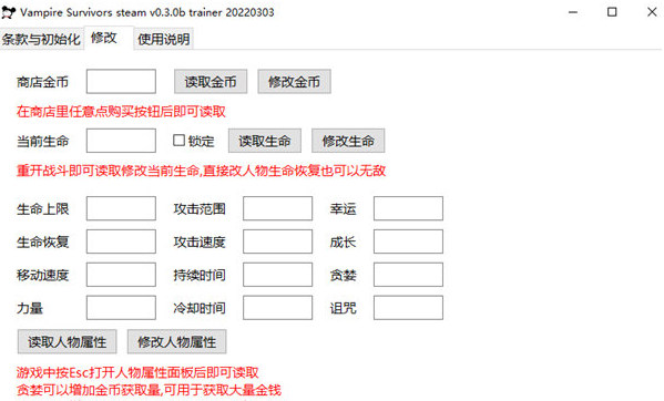 1、首先啟動游戲然后啟動吸血鬼幸存者全人物修改器,理解修飾符的用法;