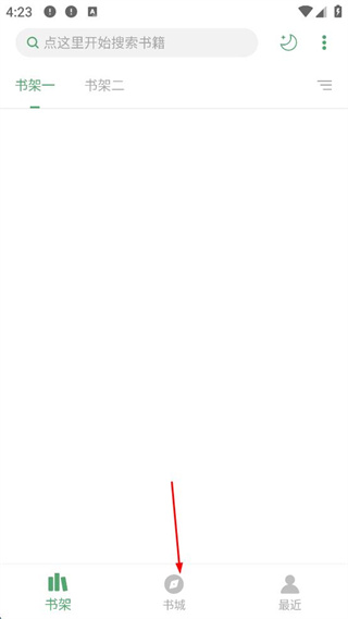 1、在APP界面點(diǎn)擊底部“書城”圖標(biāo)。