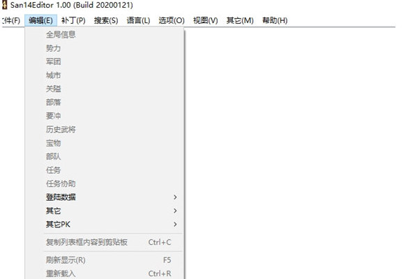 三國志14VAN大修改器(San14Editor)軟件是一款游戲輔助軟件,有很多的模式可以進行使用,修改各種功能,可以讓你更好的進行游戲,輔助功能給你節(jié)約了很多的操作模式,讓你更好的進行游戲的玩耍,非常的刺激的。