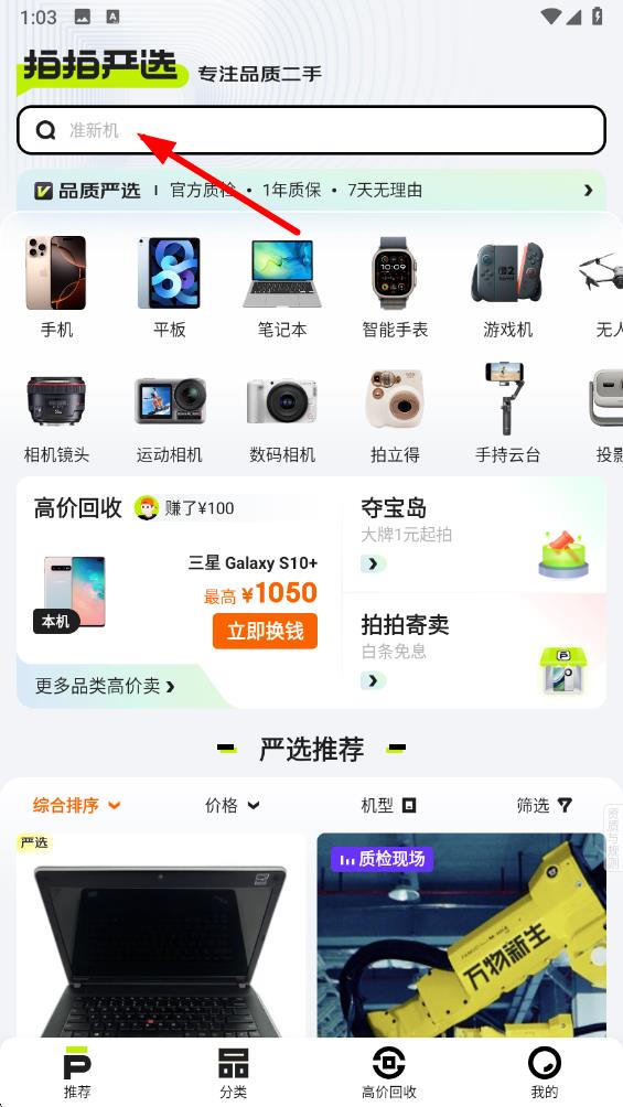 1、打開拍拍二手app,在搜索欄輸入想要查看質(zhì)檢報(bào)告的商品的關(guān)鍵詞。