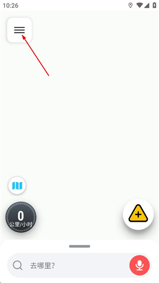 1、打開(kāi)Waze應(yīng)用,點(diǎn)擊界面左上角的菜單按鈕,進(jìn)入應(yīng)用的引導(dǎo)頁(yè)面。
