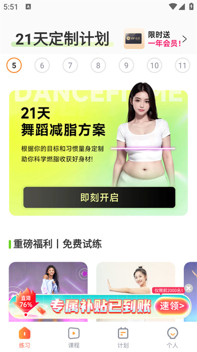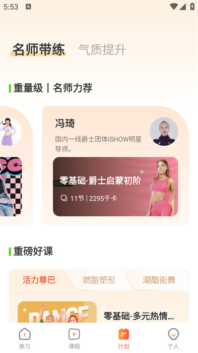 2、在軟件的首頁(yè)可以看到各種各樣的舞蹈課程和自己的舞蹈方案。