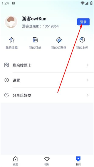 1、打開搜題俠APP,點擊底部導(dǎo)航欄我的選項。
