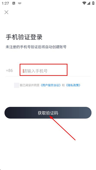 3、在登錄頁面,輸入手機號,點擊獲取驗證碼。