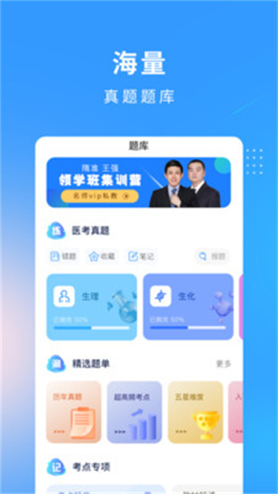 研大醫(yī)題庫軟件是包含了歷年真題的軟件,在軟件上面有非常多的往年的題目,每個(gè)考點(diǎn)下面還會(huì)有專業(yè)的測驗(yàn)考試,這樣能更加快速的了解每個(gè)知識(shí)點(diǎn),讓自己更加能記憶住這個(gè)想法,非常多的考試重點(diǎn)都需要一直進(jìn)行選擇和背誦。