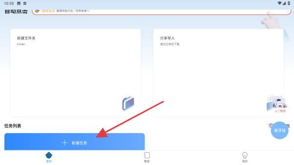 1、打開自動按鍵點擊App,點擊頁面中新建任務的功能按鈕。