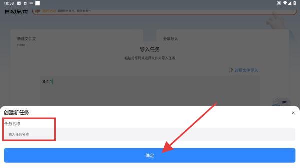 3、權限開啟后,回到App,在創(chuàng)建新任務彈窗的任務名稱輸入框中,輸入自定義的任務名稱,點擊底部確定按鈕,即可完成任務創(chuàng)建。