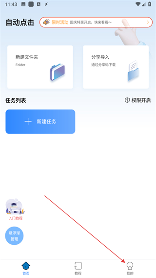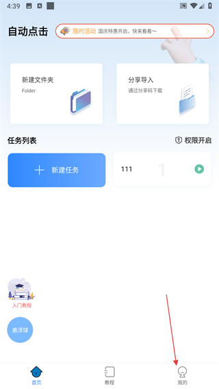 1、打開自動按鍵點擊應用,點擊右下角我的選項。