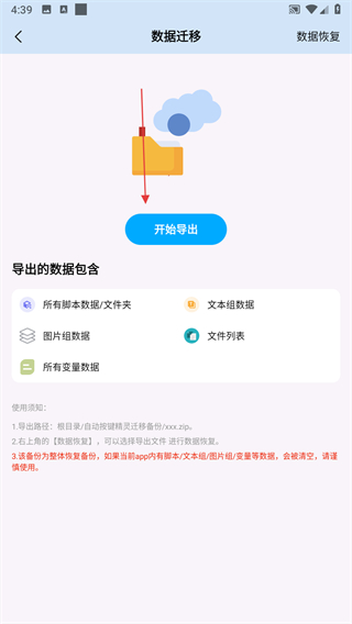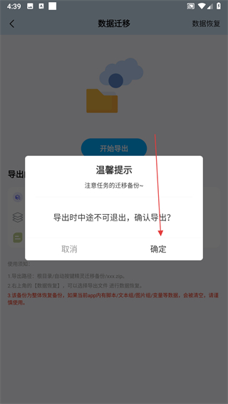 3、進入數據遷移頁面后,點擊開始導出按鈕。