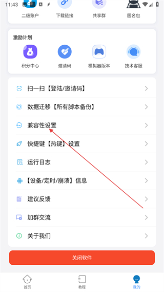 2、在個人頁面找到兼容性設置選項,點擊進入兼容性設置頁面。