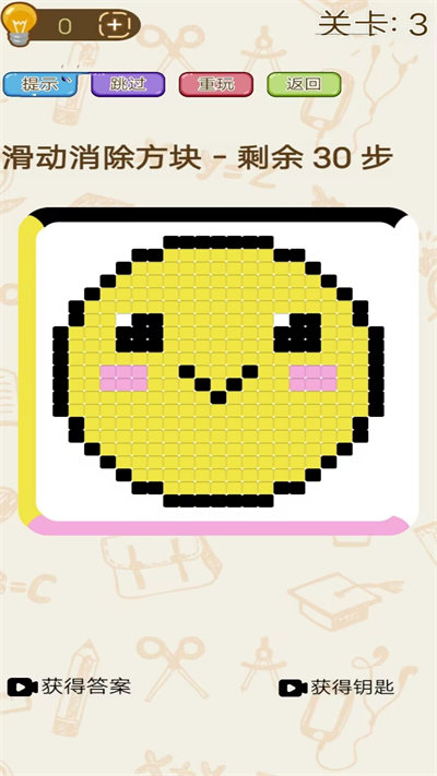 一款你很好玩的益智游戲,游戲的界面都是非常的簡約的,對玩家的吸引力極大,關(guān)卡都是有時間的限制的,玩家要在規(guī)定的時間內(nèi),完成自己的關(guān)卡挑戰(zhàn),得到新的道具進行游玩,玩家消除星星可以獲得大量的分數(shù),玩家可以選擇不同的模式進行挑戰(zhàn),用自己高超的技術(shù)來刷新自己的記錄,成為消除大師。