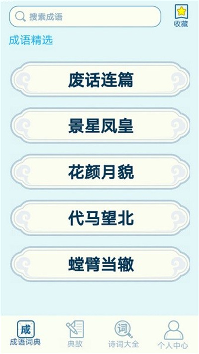 遇到自己喜歡的成語可以進(jìn)行收藏,這樣下次打開收藏夾可以多次進(jìn)行翻看。
