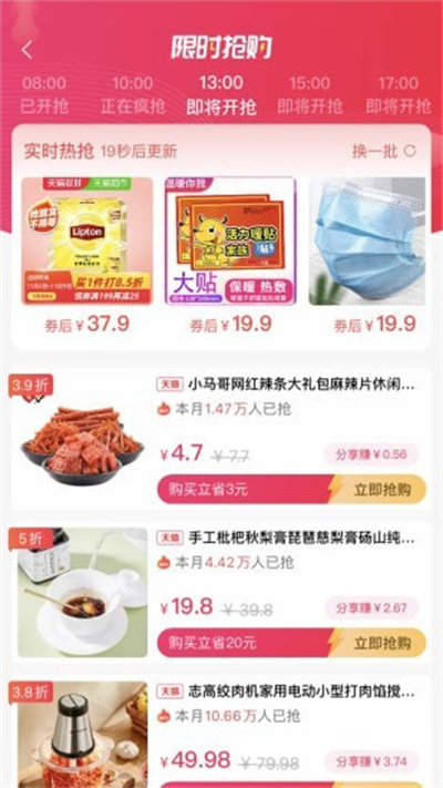 軟件上面有非常實(shí)惠的購物信息,大家可以查看每天定時(shí)的搶購活動(dòng),價(jià)格都是非常優(yōu)惠的。