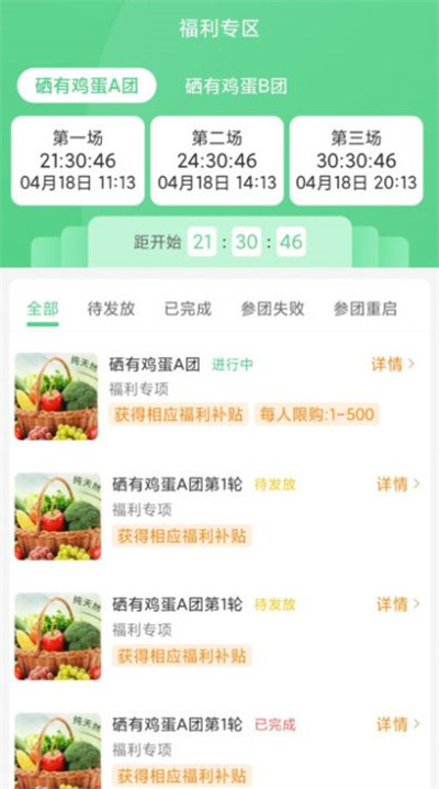 1、平臺上面會有各種拼團活動,在軟件上面可以直接定時進行搶購。