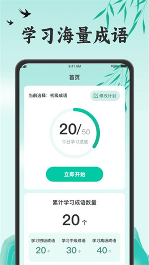 1、只需要一部聯(lián)網(wǎng)的手機就可以學(xué)習(xí)漢語成語,更加方便了用戶學(xué)習(xí)。