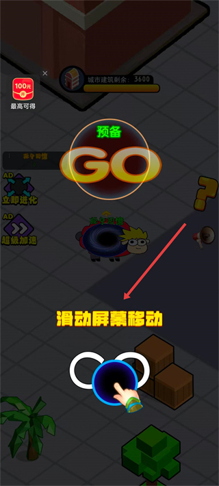2、進入場景后,通過滑動屏幕控制黑洞移動。