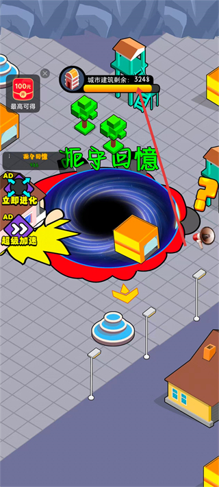 2、游戲的核心玩法是通過操縱黑洞來吞噬周圍的物體,讓自身不斷增大。