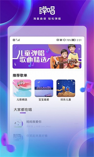 3、還有很多兒童歌曲,對于家里有小朋友的用戶來說非常適合練習(xí)。