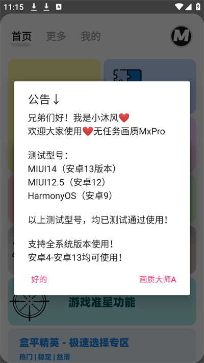 畫質MxPro軟件是專為手游玩家打造的畫質優(yōu)化工具,適配和平精英、PUBG等熱門射擊游戲,能幫玩家突破設備限制,一鍵解鎖超高清120幀畫質與超廣角視角,讓游戲畫面更清晰,輕松發(fā)現隱藏敵人,助力吃雞更輕松,無廣告干擾,操作簡單,重啟游戲即可生效。
