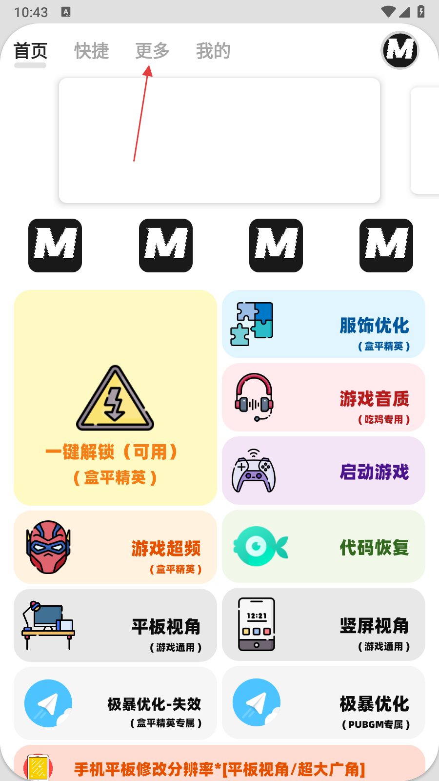 1、打開畫質MXPRO應用,在主界面點擊頂部更多選項,進入更多功能頁面。