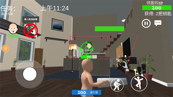 3、根據(jù)任務提示阻止鄰居,長按箭頭所指標志,準心對準鄰居即可。