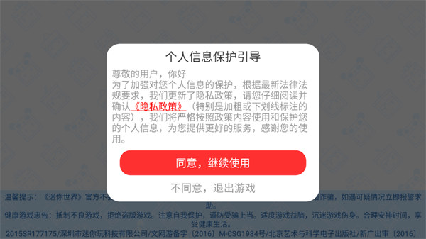 1、打開游戲之后閱讀隱私政策和用戶協(xié)議,點(diǎn)擊同意之后就能進(jìn)入到軟件;