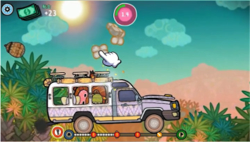 2、游戲的畫面非常的卡通和魔性,特別是當動物從車上掉下來時,那個表情非常的搞笑,給玩家?guī)矸浅6嗟臉啡ぃ?