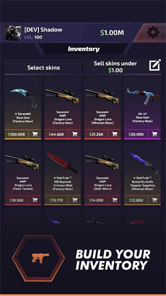 csgo皮膚模擬器是一款有趣無比的游戲,游戲的畫面非常具有科幻感,讓玩家可以很快的沉浸在游戲世界里。這個游戲的內容都很有趣,玩家可以收集到大量的武器和道具,豐富多彩的游戲內容讓人玩起來非常過癮。