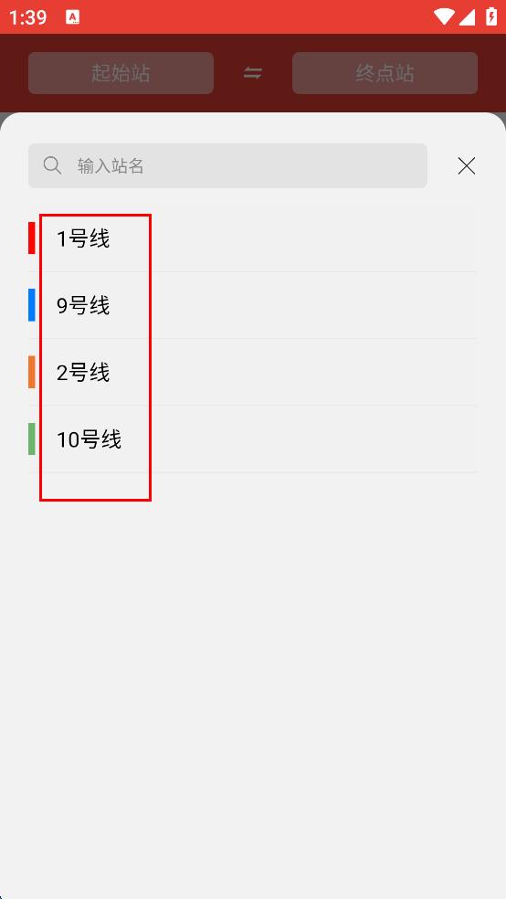 2、在APP主界面,點(diǎn)擊起始站,進(jìn)入站點(diǎn)選擇頁(yè)面,可選擇想要的地鐵線路,如1號(hào)線、2號(hào)線等。