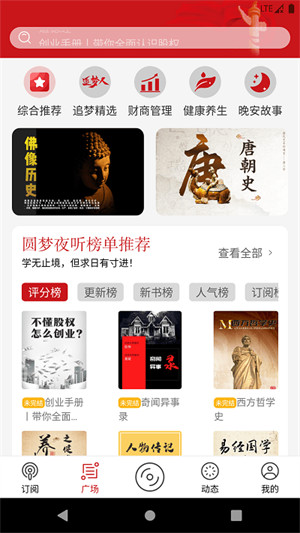 圓夢夜聽app是一款非常實用的聽書軟件,這款軟件上擁有非常多的聽書資源和小說資源,在這里用戶也能夠?qū)浖?nèi)的小說進行在線閱讀,也可以聽書,而且軟件內(nèi)的資源每天都會更新,當你訂閱收藏小說時更新還會進行提示,還擁有廣場和論壇功能,幫助用戶進行在線交流。