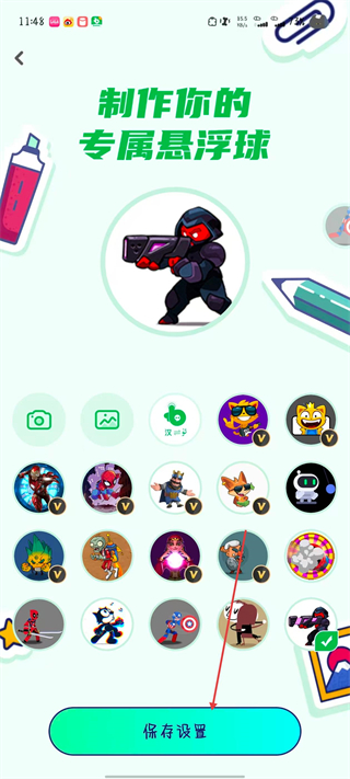 3、選擇喜歡的懸浮球主題樣式,選擇完成后,點(diǎn)擊保存設(shè)置按鈕。