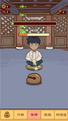 2、玩家在游戲中可以輕松地與手機(jī)互動(dòng),每次點(diǎn)擊屏幕就能發(fā)出一種非常磐靜、悠揚(yáng)的木魚聲;