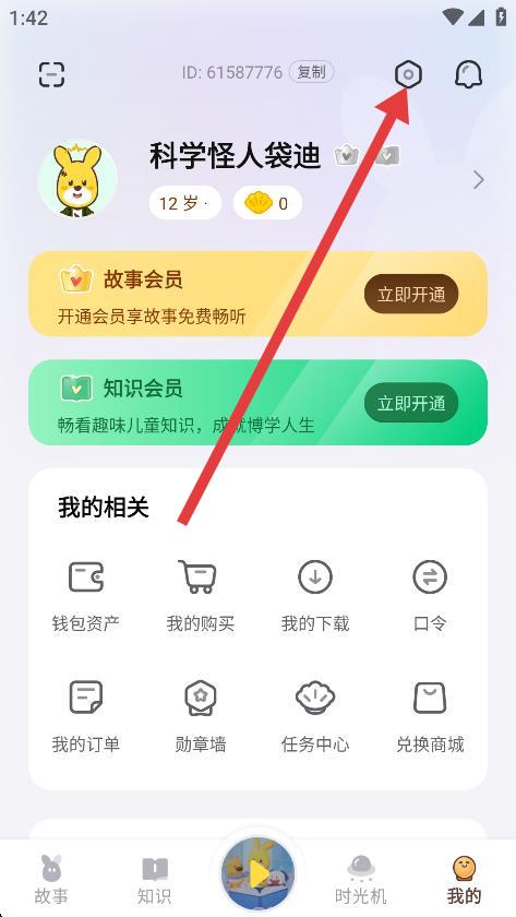 2、在我的頁面中,點擊右上角的設(shè)置圖標。