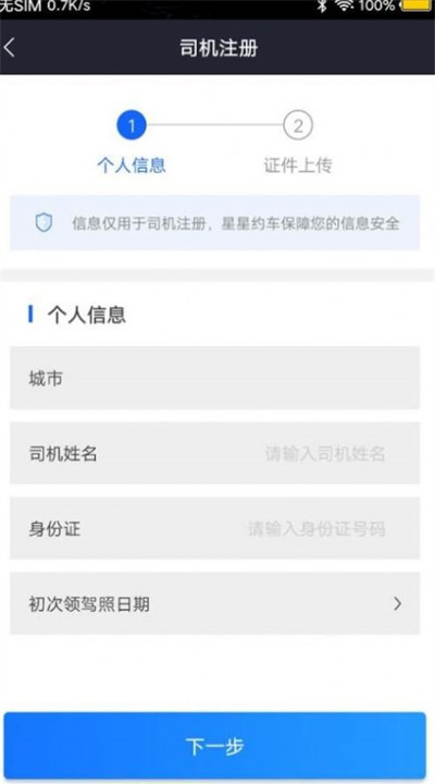 3、如果你也想要申請司機(jī)的身份,可以上傳自己的信息和駕駛證,審核通過即可。