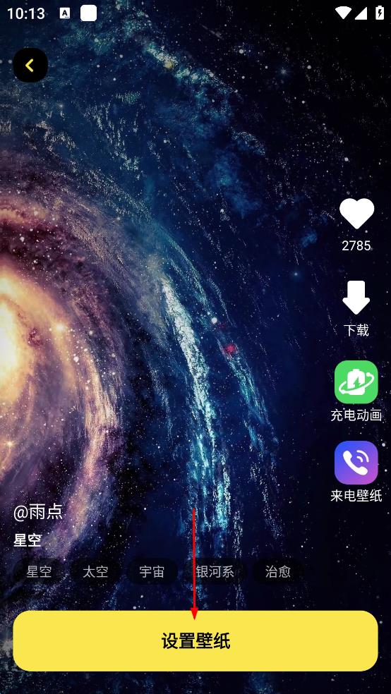 3、進入壁紙詳情頁面后,點擊下方醒目的“設(shè)置壁紙”按鈕,按照軟件提示完成后續(xù)操作,即可將選中的動態(tài)壁紙設(shè)置為手機壁紙。