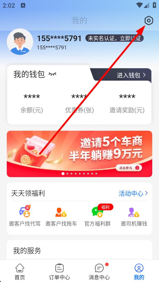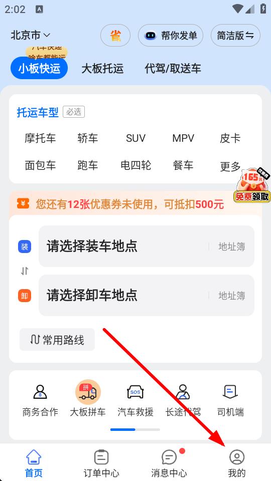 1、打開車拖車APP,點(diǎn)擊首頁下方導(dǎo)航欄中的我的進(jìn)入個(gè)人中心頁面。