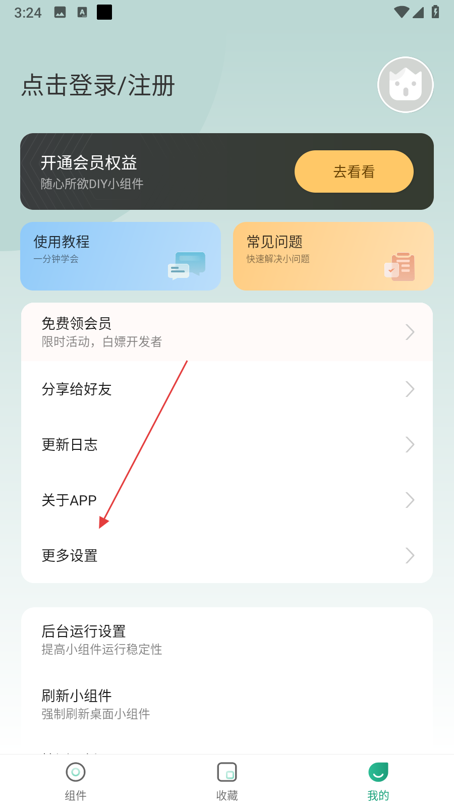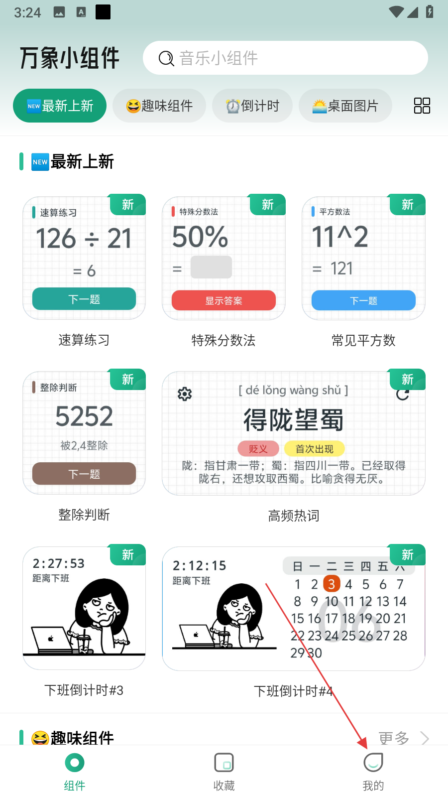 1、打開萬象小組件APP,點擊頁面底部我的,進入個人頁面。