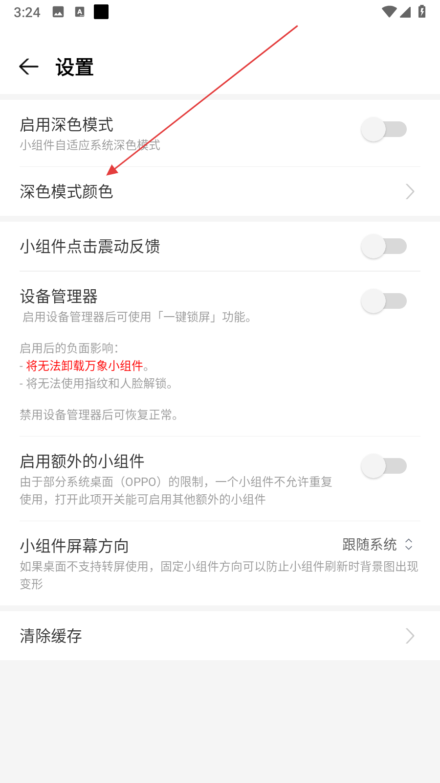 3、在設置界面里,點擊深色模式顏色選項,進入深色模式顏色設置頁面。