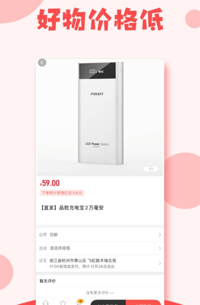 3、每個(gè)商品都會(huì)寫上運(yùn)費(fèi)和款式,以及預(yù)計(jì)送達(dá)的時(shí)間,讓大家感受到物流的快速。