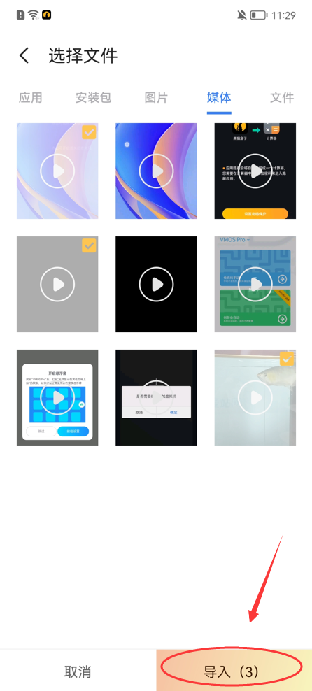 4、選擇需要導(dǎo)入的視頻,點擊“導(dǎo)入”。