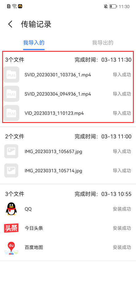 5、成功導(dǎo)入后,可在傳輸記錄中看見已導(dǎo)入的視頻記錄。