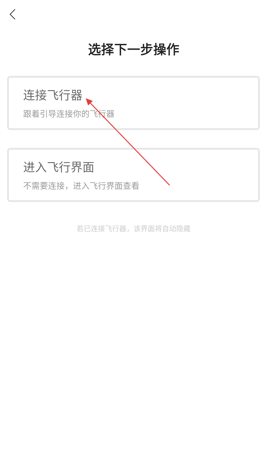2、在選擇下一步操作界面中,點擊連接飛行器選項,跟隨軟件引導(dǎo)開始連接流程。