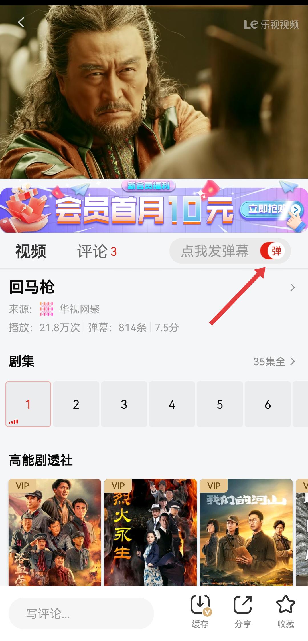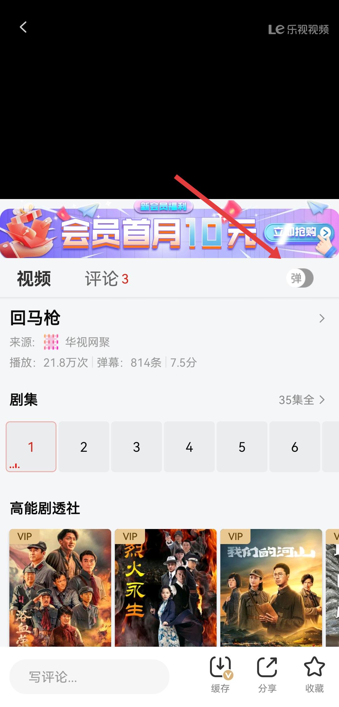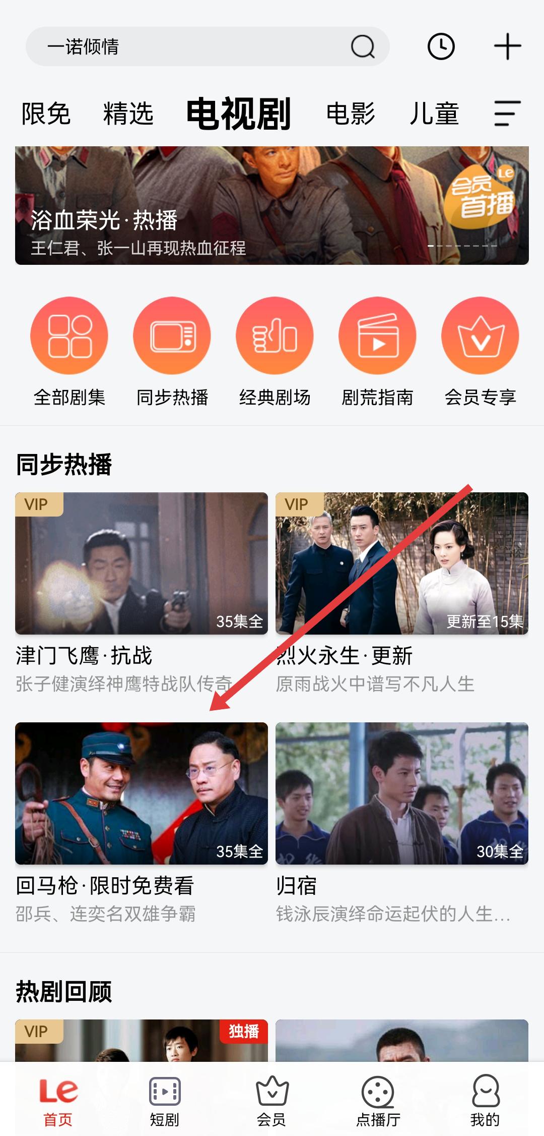 1、打開樂視視頻APP,在首頁的電視劇板塊里,挑選并點(diǎn)擊目標(biāo)視頻如回馬槍,進(jìn)入該視頻的播放界面。