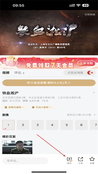 3、進(jìn)入播放的頁面內(nèi),點(diǎn)擊下方緩存的按鈕即可下載。