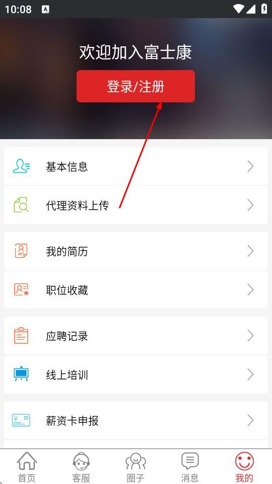 2、在我的頁(yè)面,點(diǎn)擊登錄/注冊(cè)按鈕。