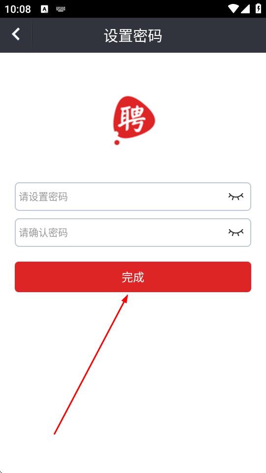 5、進(jìn)入設(shè)置密碼頁(yè)面,設(shè)置密碼并再次確認(rèn)密碼,點(diǎn)擊完成,即可完成注冊(cè)。