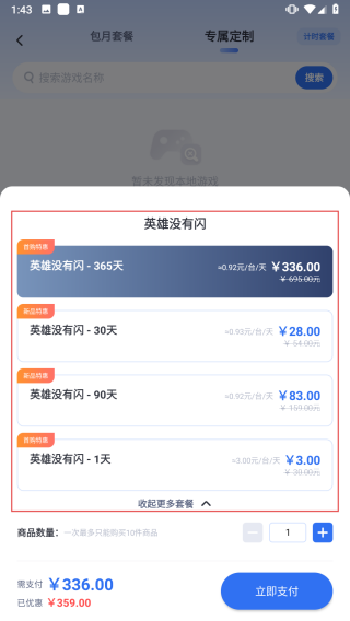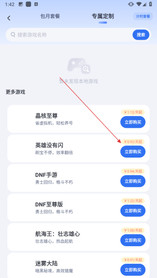 2、進(jìn)入套餐選擇頁(yè)面后,找到目標(biāo)游戲套餐,點(diǎn)擊套餐右側(cè)的立即購(gòu)買按鈕。