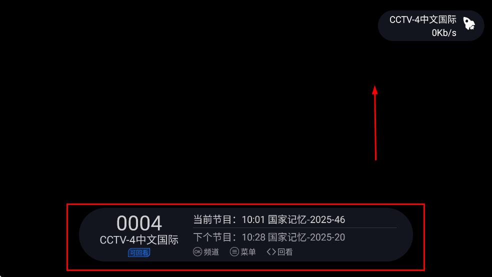 4、省份切換完成后,回到播放界面,此時(shí)界面下方會(huì)顯示當(dāng)前頻道的節(jié)目信息等內(nèi)容,向上滑動(dòng)界面,即可瀏覽并選擇其他頻道進(jìn)行觀看。