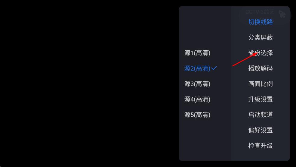 1、打開電視直播軟件,進(jìn)入播放界面,點(diǎn)擊界面右上方顯示頻道信息的區(qū)域,調(diào)出設(shè)置菜單。