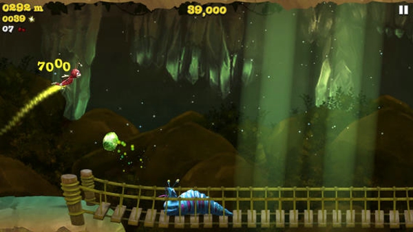《螢火之旅》(Firefly Runner)游戲的操作和一般的跑酷類(lèi)相似,玩家需要左右手同時(shí)開(kāi)工,屏幕左邊是控制螢火蟲(chóng)的移動(dòng)飛行的,而右邊是用來(lái)攻擊害蟲(chóng)的。。當(dāng)然光是飛行攻擊哪能得到高分呢?在游戲進(jìn)行中,玩家可以控制螢火蟲(chóng)吃到浮在空中的金光或者是鑰匙、櫻桃等。。鑰匙和櫻桃是比較重要的兩個(gè)道具,前者是可以打開(kāi)枷鎖解救小伙伴的,而后者就是用來(lái)攻擊害蟲(chóng)的武器,最好一樣都不落下哦!